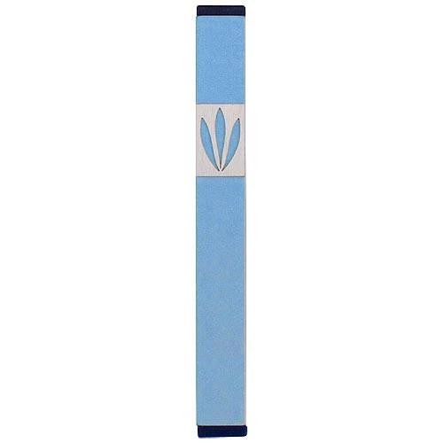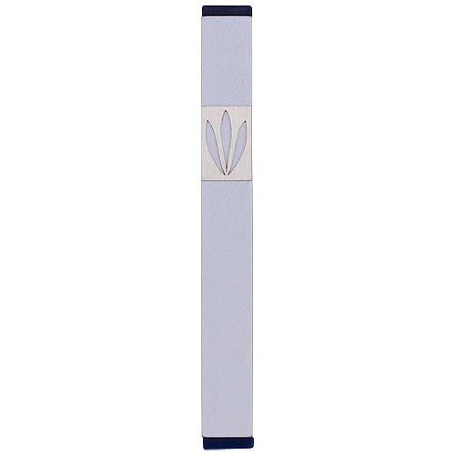 LEAVES SHIN MEZUZAH. A stylized SHIN, formed by three simple LEAVES that grow from a single node, gives this mezuzah an uncluttered modern personality. This design complements many styles of furnishing including creative, contemporary, trendy, minimalist, and fun. A great choice as a stand-alone piece; or an excellent solution for a consistent look throughout a home or place of work. The subtle, matt finish is available in ten different colors and four sizes, to provide flexibility for different rooms and doorways.