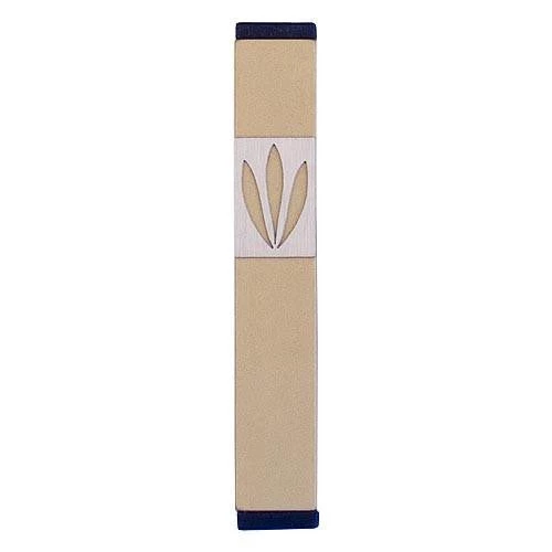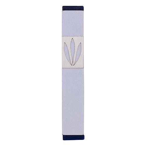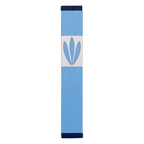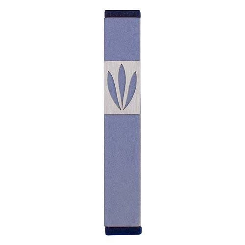 LEAVES SHIN MEZUZAH. A stylized SHIN, formed by three simple LEAVES that grow from a single node, gives this mezuzah an uncluttered modern personality. This design complements many styles of furnishing including creative, contemporary, trendy, minimalist, and fun. A great choice as a stand-alone piece; or an excellent solution for a consistent look throughout a home or place of work. The subtle, matt finish is available in ten different colors and four sizes, to provide flexibility for different rooms and doorways.