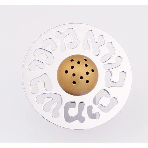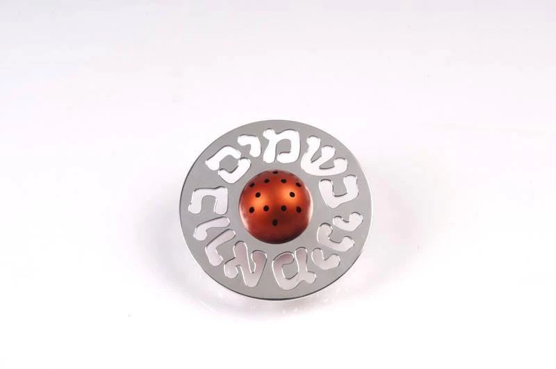Either as part of our clean styled Havdallah Set in metallic neutral color, or standing on its own, this container for spices (intended for the “Bessamim” blessing) is meant to contain spices such as cloves or cinnamon to release a pleasant perfume at the time of the Havdallah, when the Sacred (Shabbat and Holidays) is disconnected from the Chol (Motzei Shabbat or Chag).