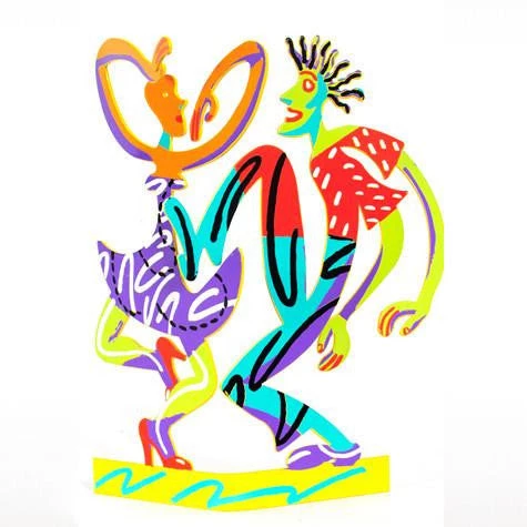 Israeli artist David Gerstein’s ”Dancers” series is created through the unique process of serigraphy on laser cut steel. The result is a special piece of art that is colorful, whimsical and contemporary. Each piece is double sided for maximum beauty from all angles.