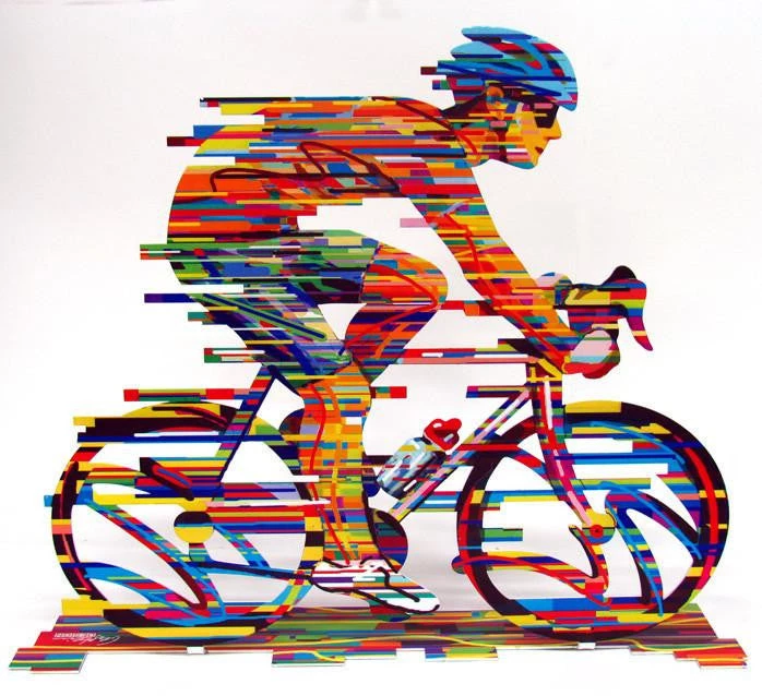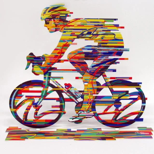 Israeli artist David Gerstein’s “Riders” sculptures are created through the unique process of serigraphy on laser cut steel. The result is a special piece of art that is colorful, whimsical and contemporary. Each piece is double sided for maximum beauty from all angles.Â