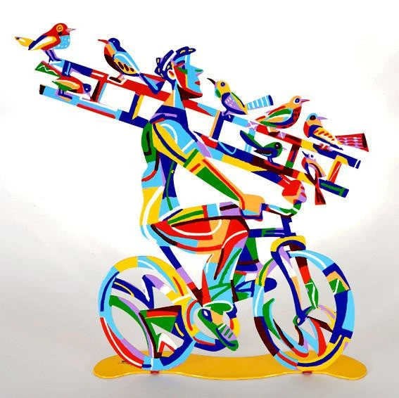 Israeli artist David Gerstein’s “Riders” sculptures are created through the unique process of serigraphy on laser cut steel. The result is a special piece of art that is colorful, whimsical and contemporary. Each piece is double sided for maximum beauty from all angles.Â