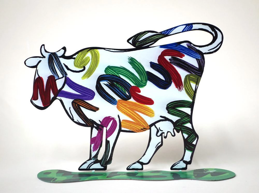 Israeli artist​ ​David Gerstein’s ​”​Cows​”​ ​s​eries​ ​is created through the unique process of serigraphy on laser cut steel. The result is a special piece of art that is colorful, whimsical and contemporary. Each piece is double sided for maximum beauty from all angles.Â