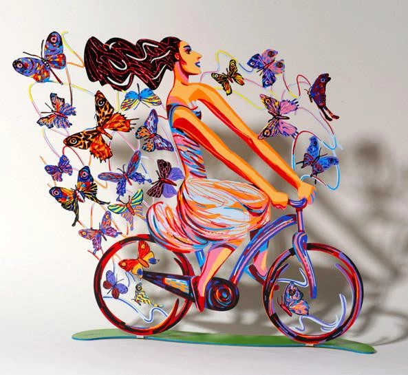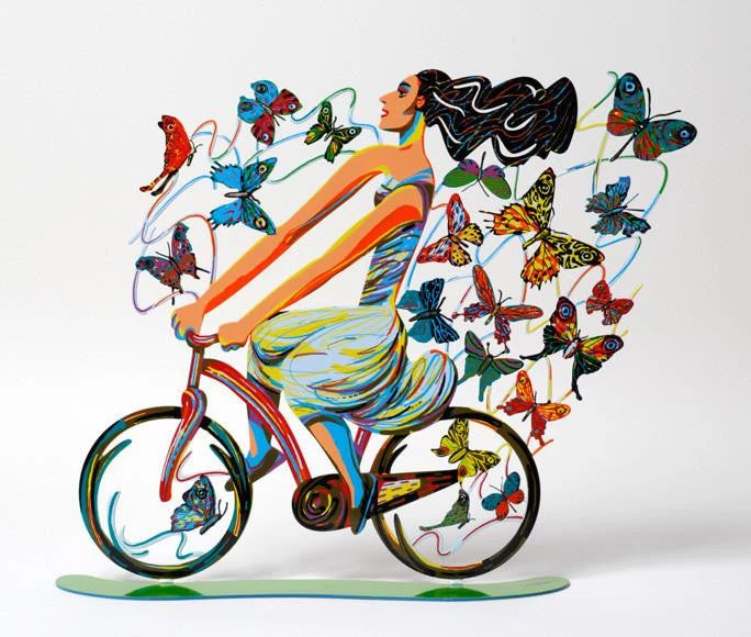 Israeli artist David Gerstein’s “Riders” sculptures are created through the unique process of serigraphy on laser cut steel. The result is a special piece of art that is colorful, whimsical and contemporary. Each piece is double sided for maximum beauty from all angles.