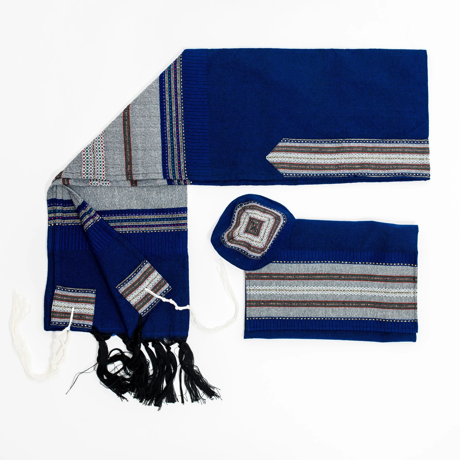Gabrieli tallits are hand woven in our studio in Israel by our experienced tapestry artisans. We use the finest materials to ensure a finished product of the highest standard. All Gabrieli tallits are sold as a set that includes a matching kippah and tallit bag along with the tallit itself.