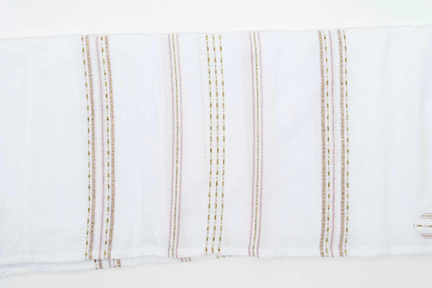 While ordering, choose to further customize your tallit by adding an atara, collar, with a hand embroidered blessing for donning the tallit and/or tzizit that include Ptil Tekhelet, blue strands.