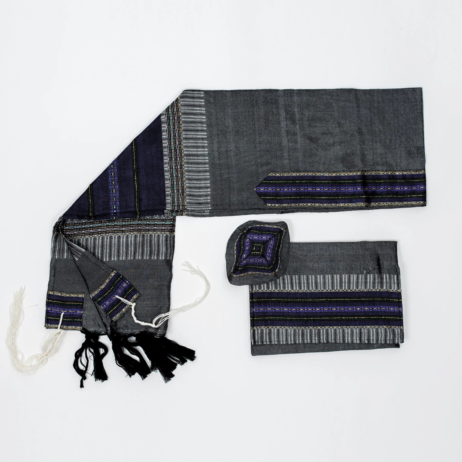 Gabrieli tallits are hand woven in our studio in Israel by our experienced tapestry artisans. We use the finest materials to ensure a finished product of the highest standard. All Gabrieli tallits are sold as a set that includes a matching kippah and tallit bag along with the tallit itself.