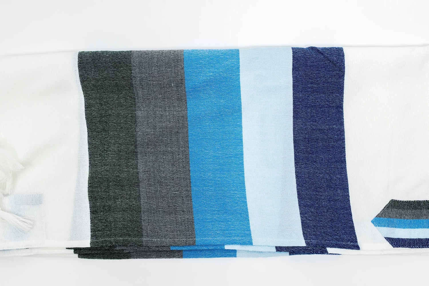 While ordering, choose to further customize your tallit by adding an atara, collar, with a hand embroidered blessing for donning the tallit and/or tzizit that include Ptil Tekhelet, blue strands.