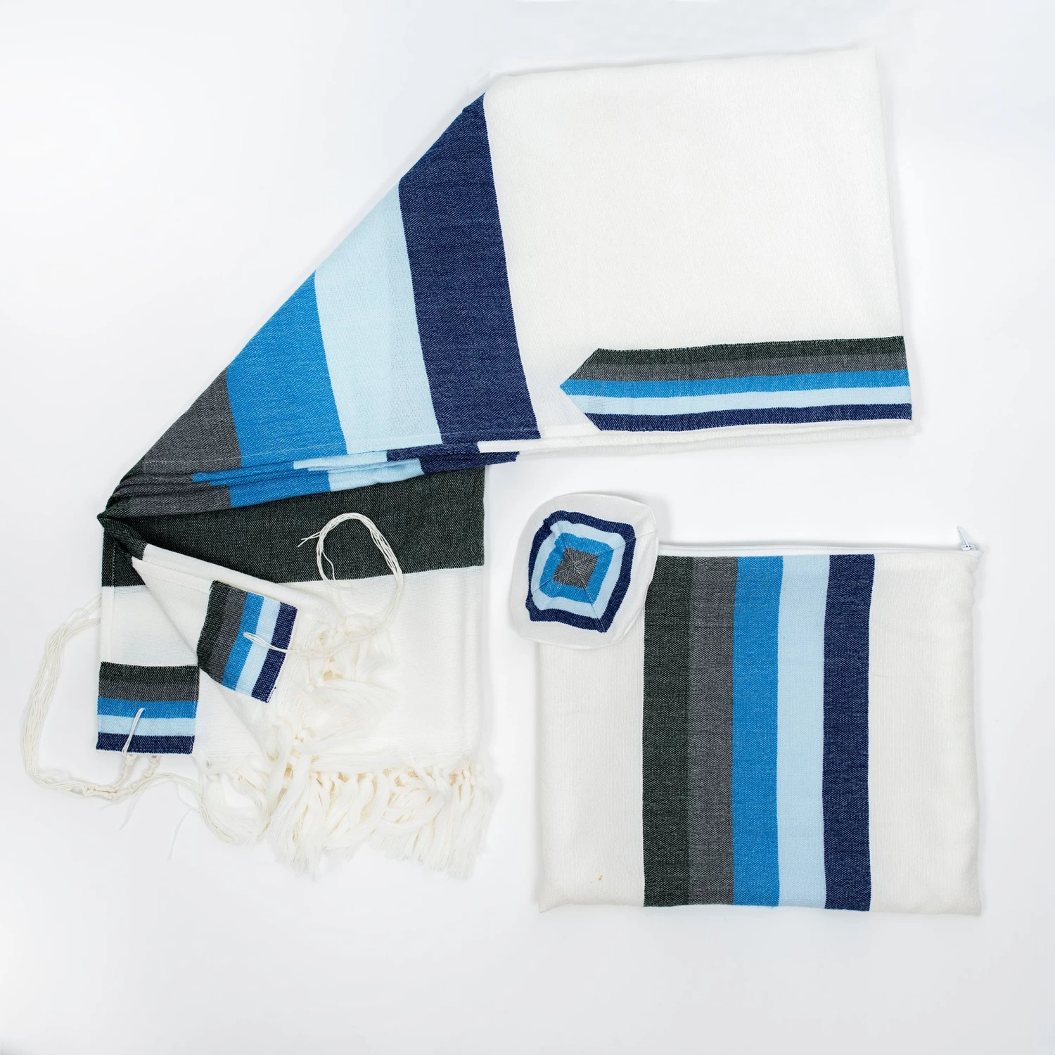Gabrieli tallits are hand woven in our studio in Israel by our experienced tapestry artisans. We use the finest materials to ensure a finished product of the highest standard. All Gabrieli tallits are sold as a set that includes a matching kippah and tallit bag along with the tallit itself.