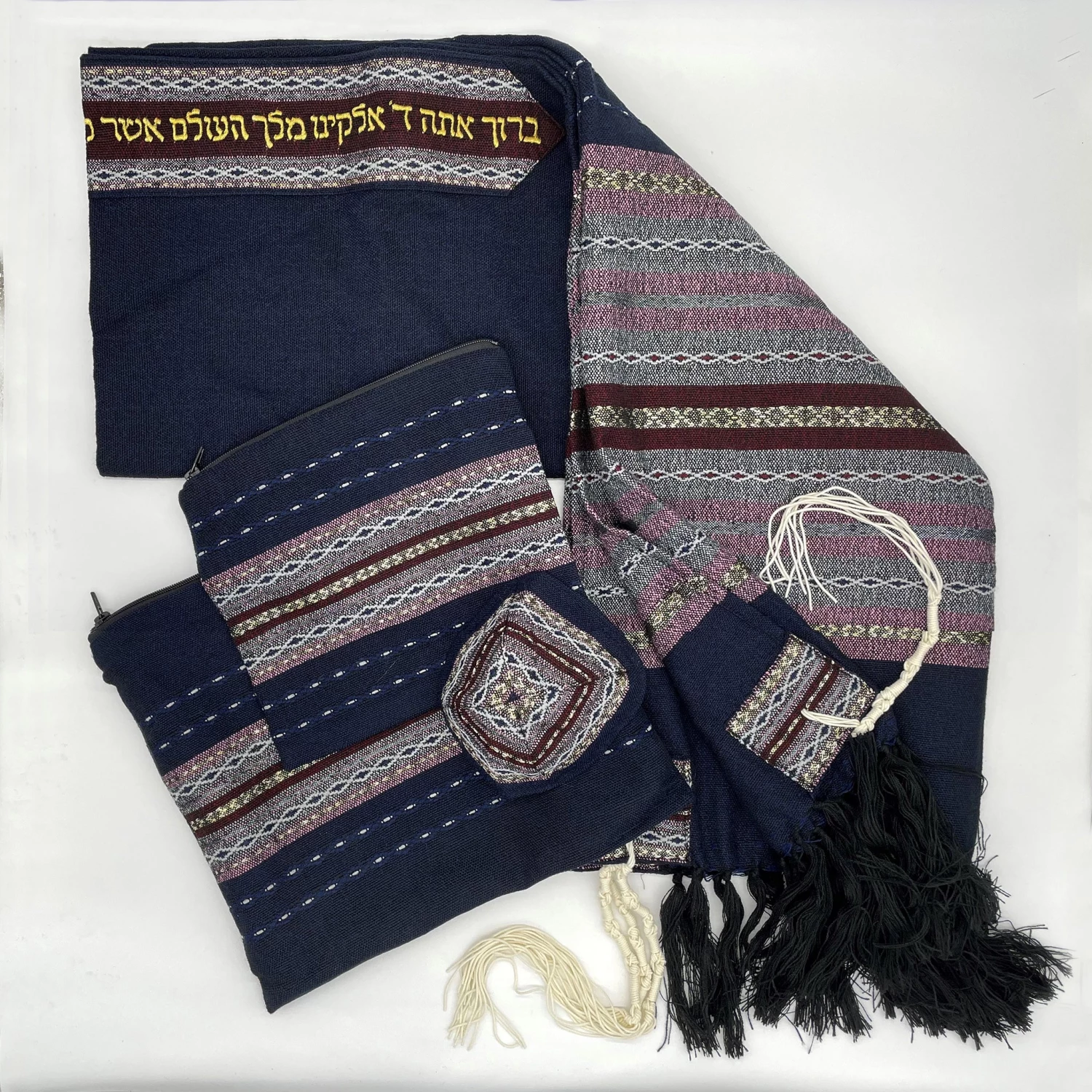 Hand woven in our studio in Israel by our experienced tapestry artisans, our Premium Collection consists of tallits with more intricate designs and patterns making each tallit a premium work of art. Each premium tallit comes standard with a hand embroidered blessing on the collar, double sided patterned corners, thick tzizit and a matching tefillin bag. As with all of our Gabrieli sets, the premium collection also includes a matching kippah and tallit bag.