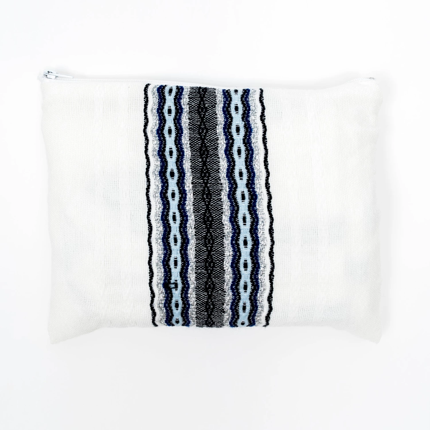 While ordering, choose to further customize your tallit by adding an atara, collar, with a hand embroidered blessing for donning the tallit and/or tzizit that include Ptil Tekhelet, blue strands.