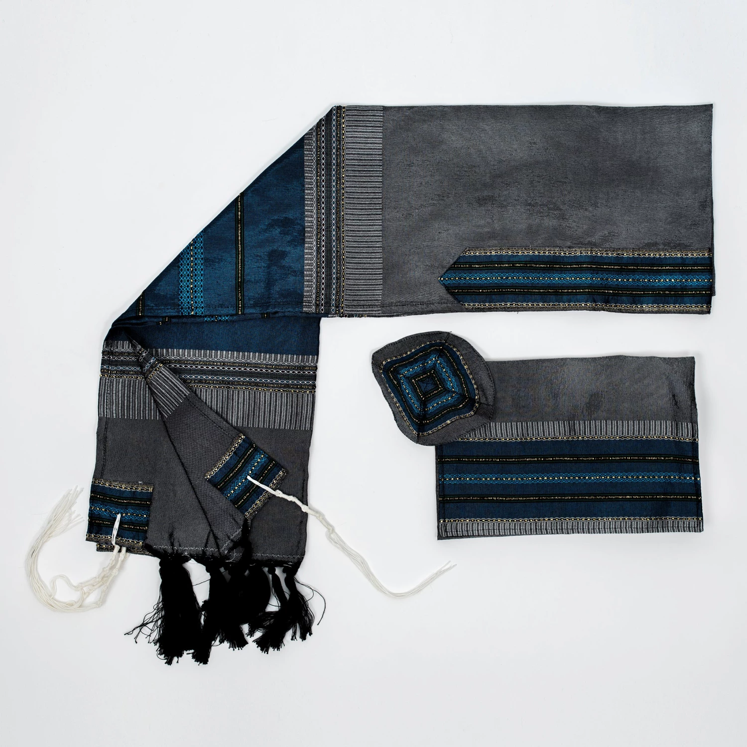Gabrieli tallits are hand woven in our studio in Israel by our experienced tapestry artisans. We use the finest materials to ensure a finished product of the highest standard. All Gabrieli tallits are sold as a set that includes a matching kippah and tallit bag along with the tallit itself.