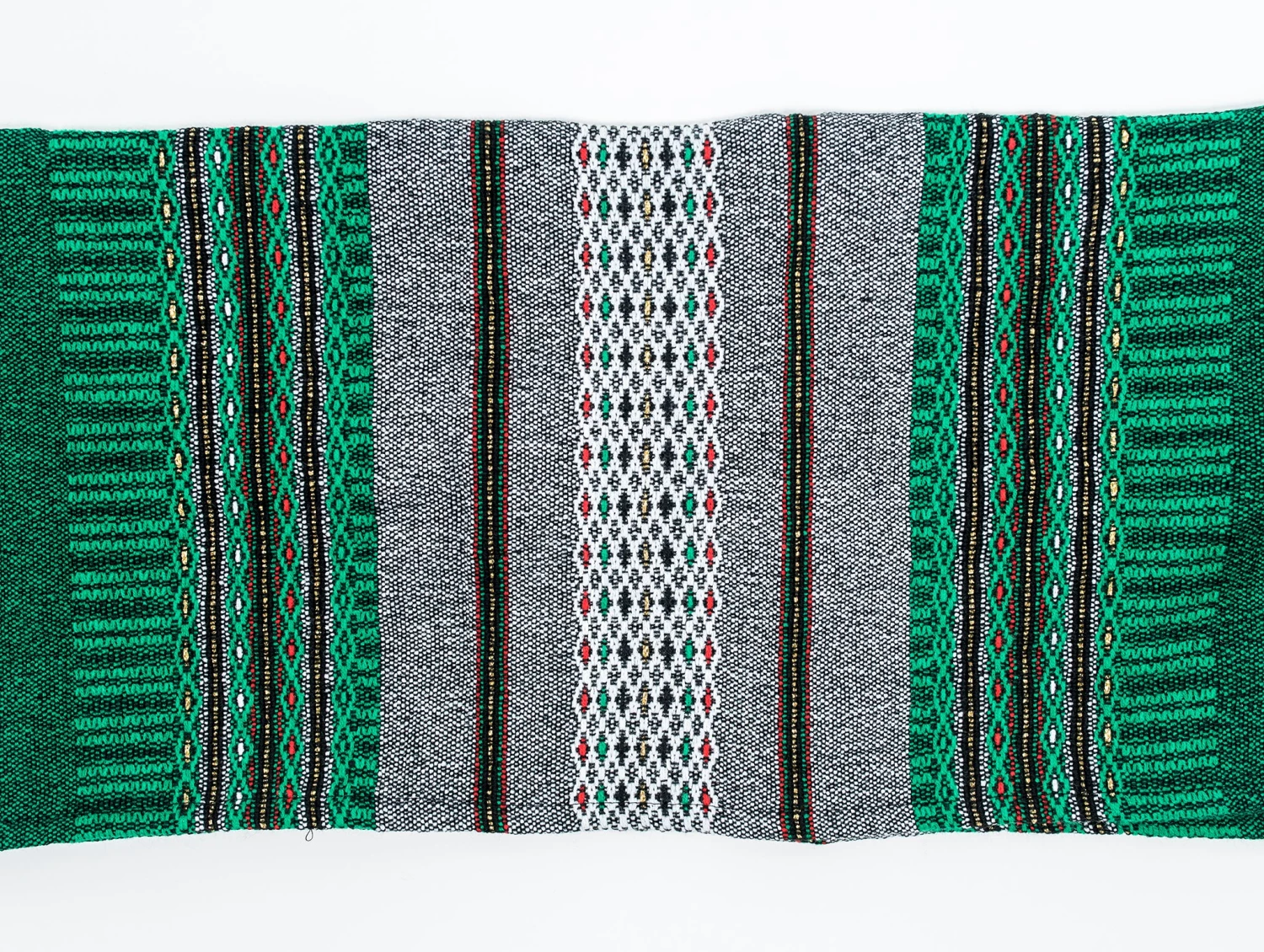 Green background with grey and a touch of red, black and gold.