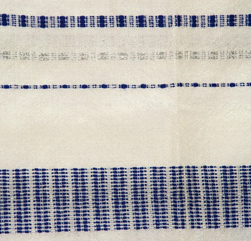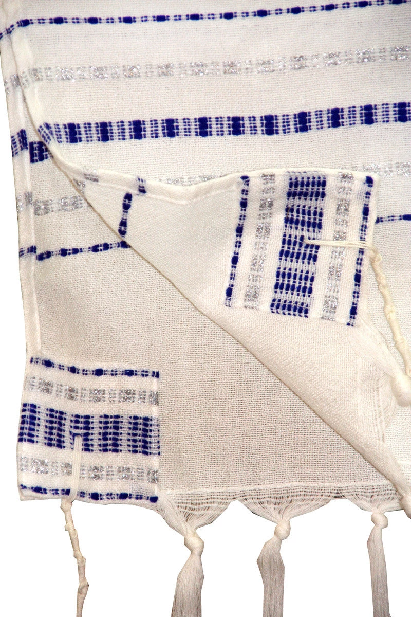 While ordering, choose to further customize your tallit by adding an atara, collar, with a hand embroidered blessing for donning the tallit and/or tzizit that include Ptil Tekhelet, blue strands.
