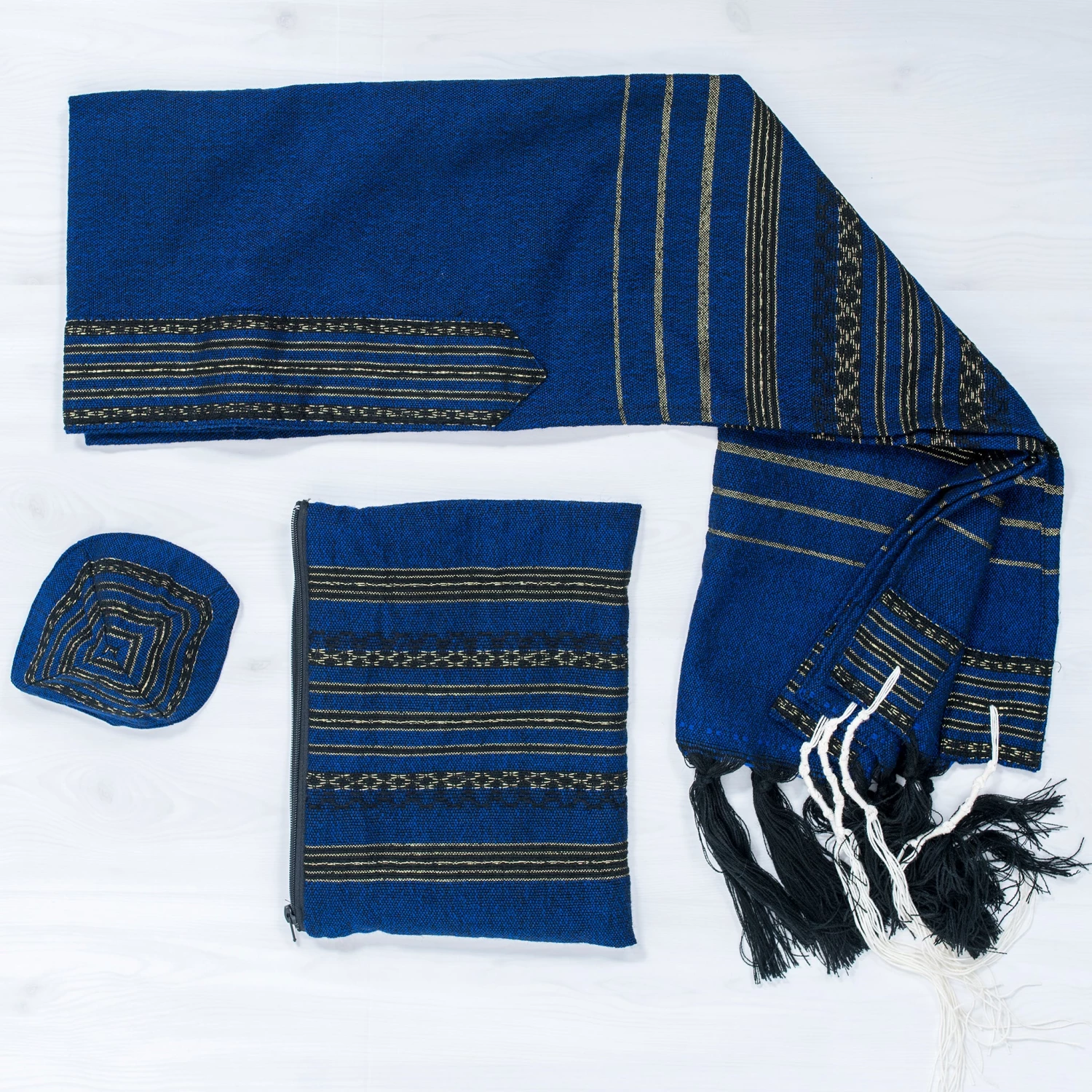 Gabrieli tallits are hand woven in our studio in Israel by our experienced tapestry artisans. We use the finest materials to ensure a finished product of the highest standard. All Gabrieli tallits are sold as a set that includes a matching kippah and tallit bag along with the tallit itself.