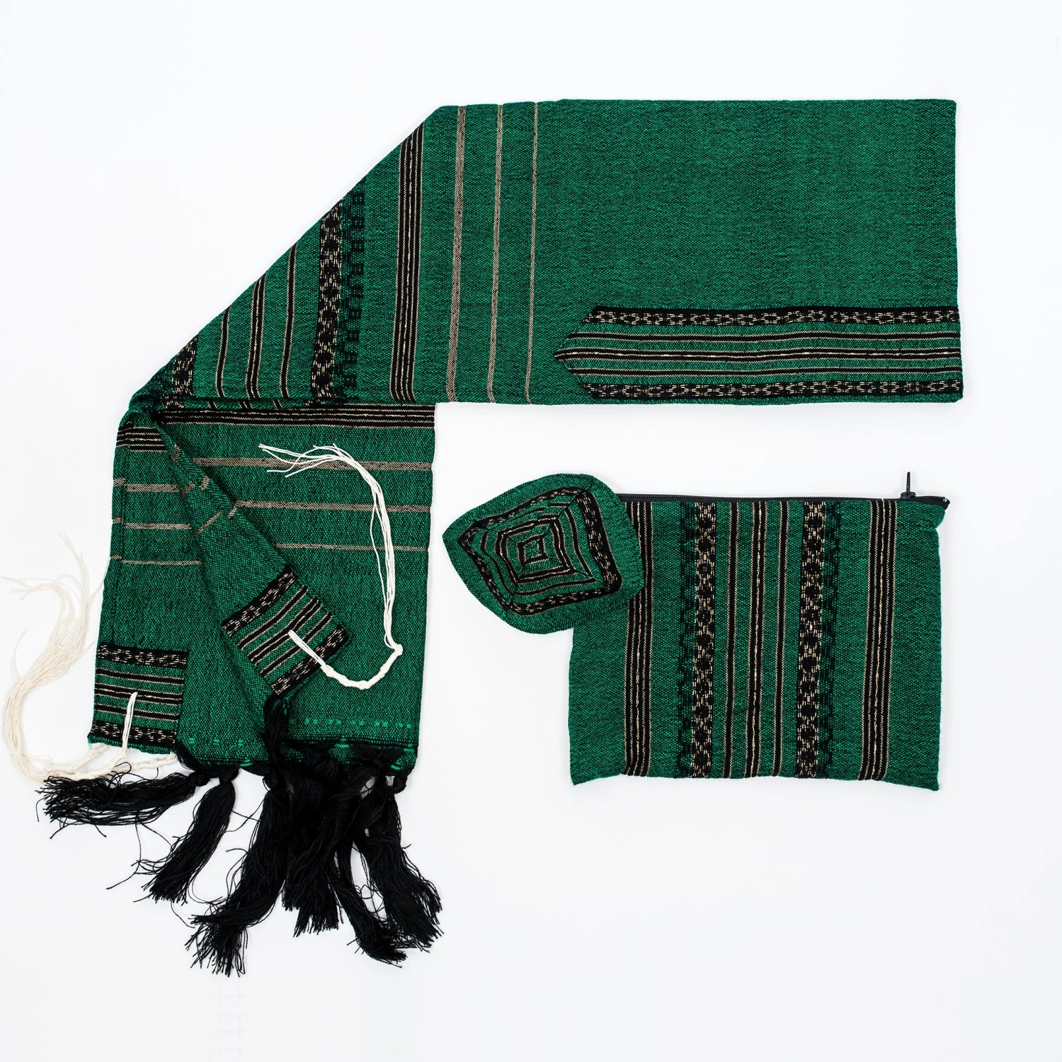 Gabrieli tallits are hand woven in our studio in Israel by our experienced tapestry artisans. We use the finest materials to ensure a finished product of the highest standard. All Gabrieli tallits are sold as a set that includes a matching kippah and tallit bag along with the tallit itself.