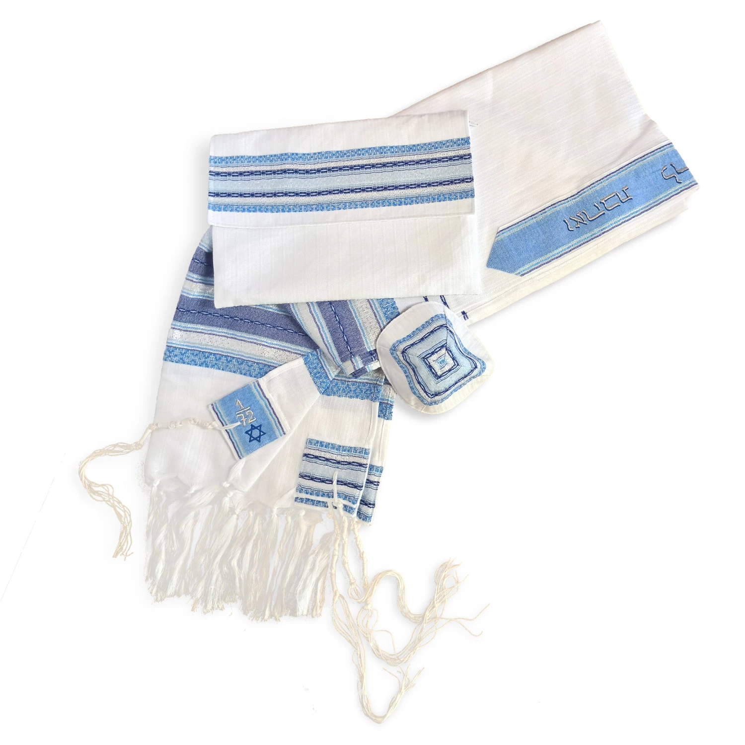 Like all of our tallit sets, includes a matching kippah and tallit bag.