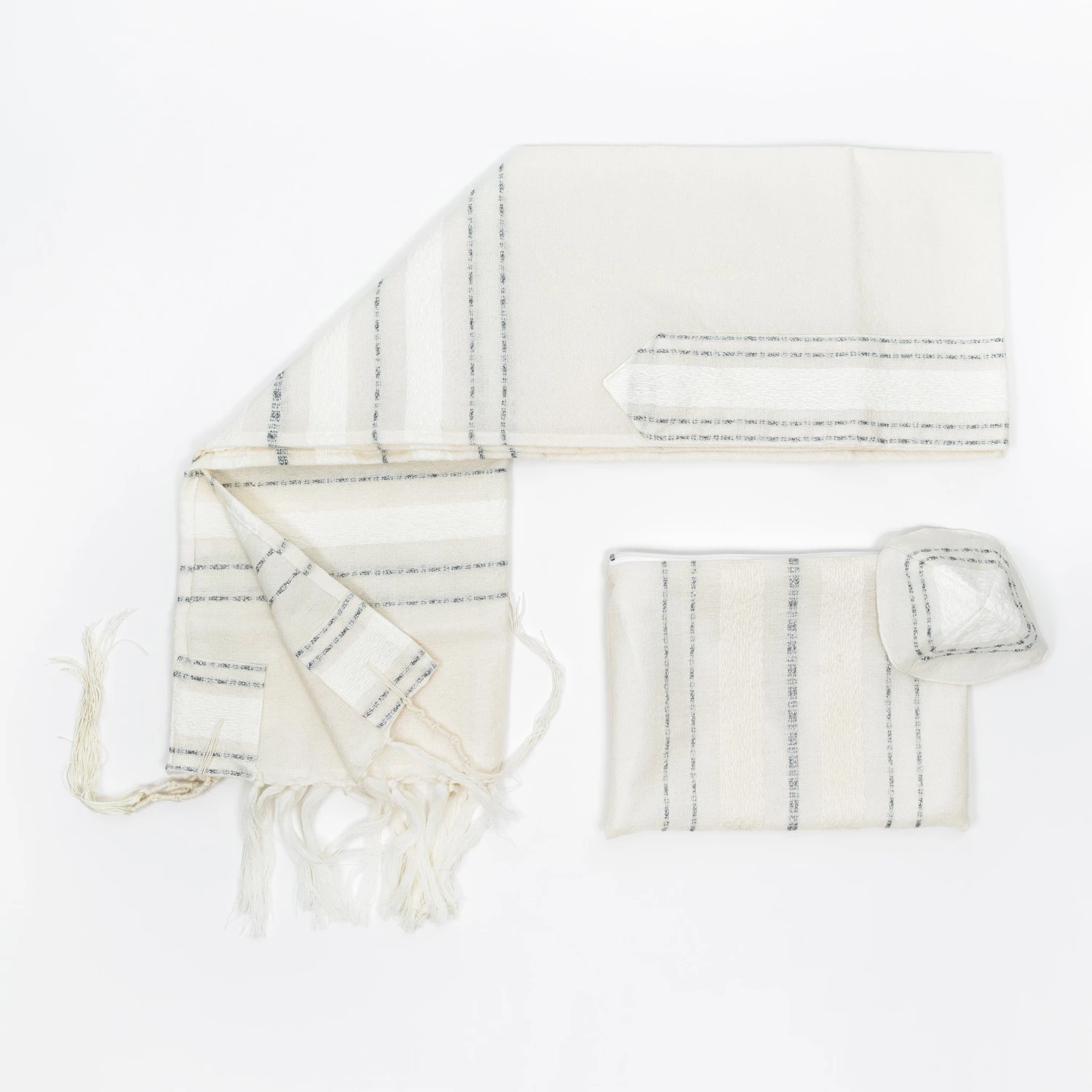 Gabrieli tallits are hand woven in our studio in Israel by our experienced tapestry artisans. We use the finest materials to ensure a finished product of the highest standard. All Gabrieli tallits are sold as a set that includes a matching kippah and tallit bag along with the tallit itself.