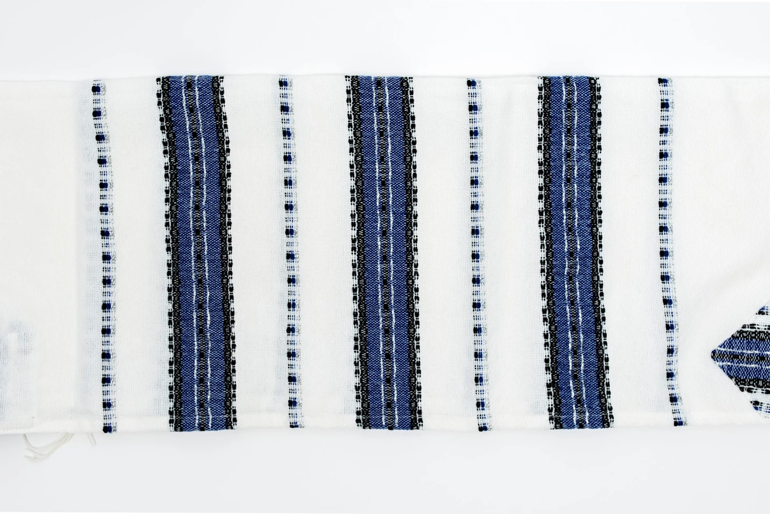While ordering, choose to further customize your tallit by adding an atara, collar, with a hand embroidered blessing for donning the tallit and/or tzizit that include Ptil Tekhelet, blue strands.