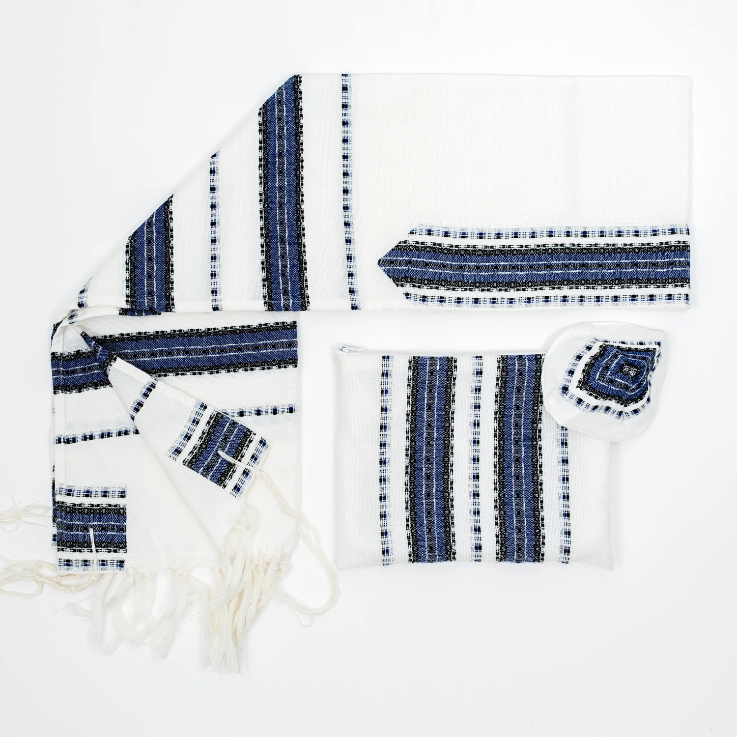 Gabrieli tallits are hand woven in our studio in Israel by our experienced tapestry artisans. We use the finest materials to ensure a finished product of the highest standard. All Gabrieli tallits are sold as a set that includes a matching kippah and tallit bag along with the tallit itself.