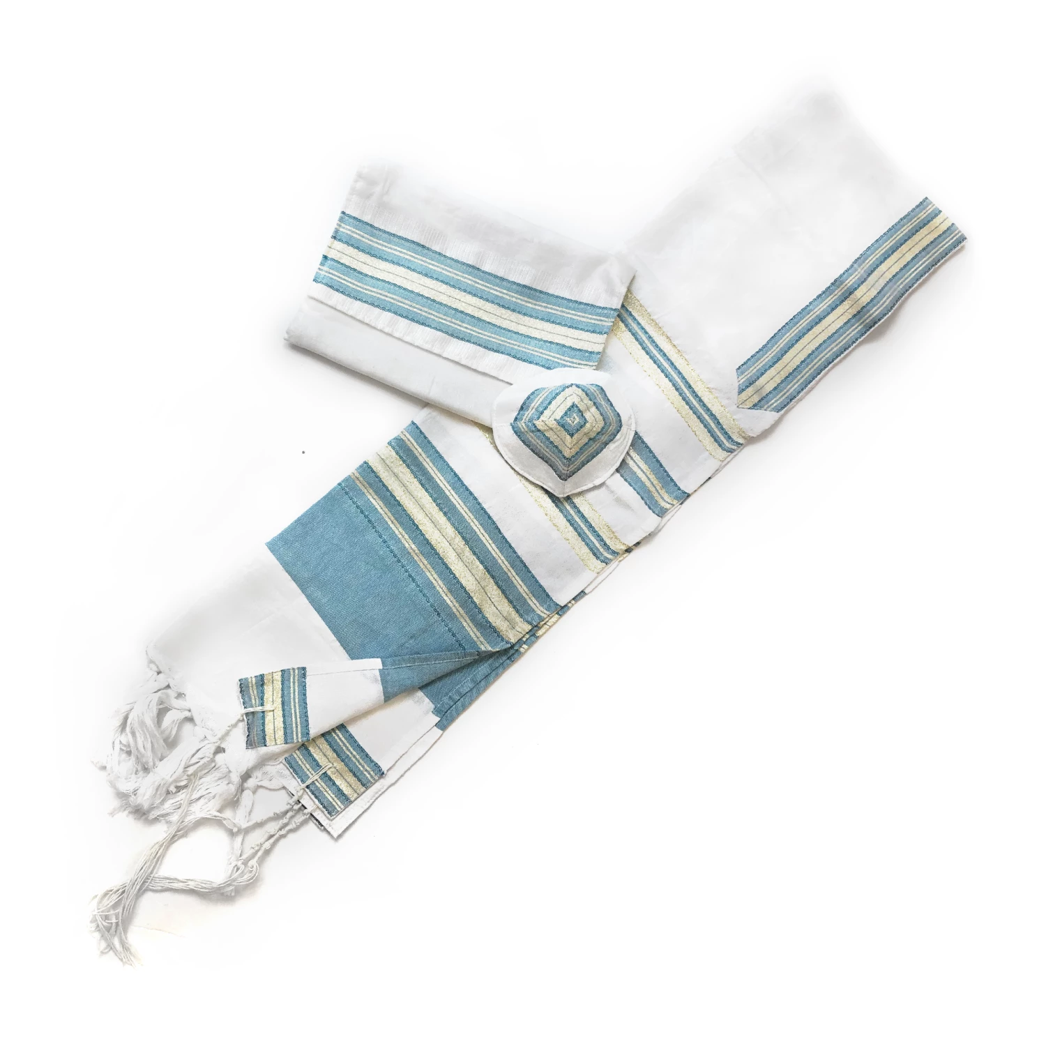 Gabrieli tallits are hand woven in our studio in Israel by our experienced tapestry artisans. We use the finest materials to ensure a finished product of the highest standard. All Gabrieli tallits are sold as a set that includes a matching kippah and tallit bag along with the tallit itself.