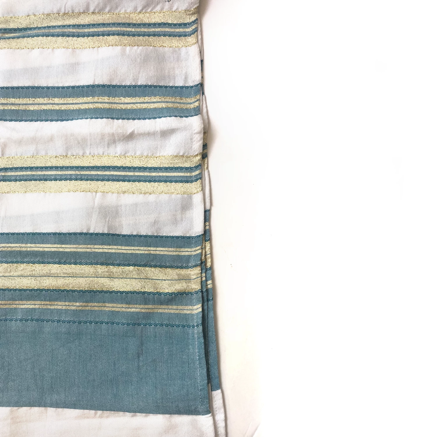 While ordering, choose to further customize your tallit by adding an atara, collar, with a hand embroidered blessing for donning the tallit and/or tzizit that include Ptil Tekhelet, blue strands.