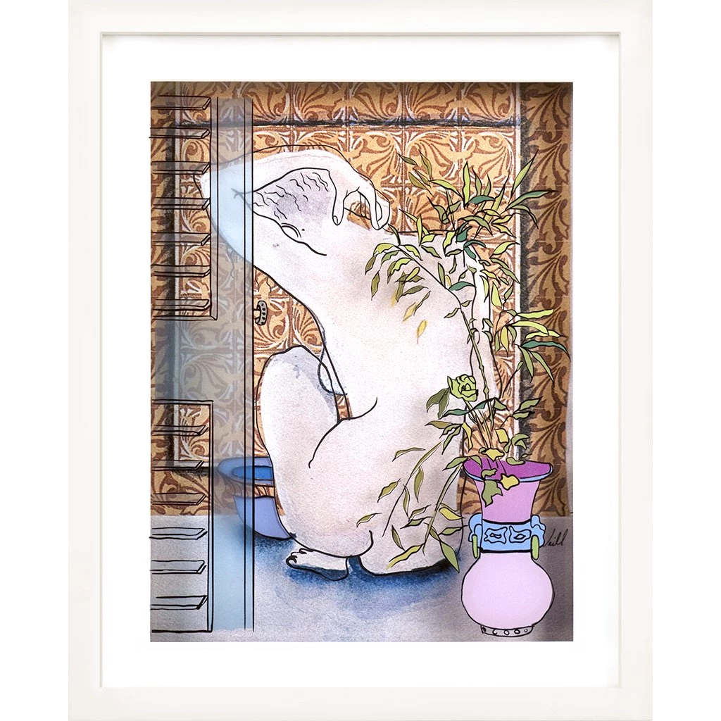 The simple lines of the human body are truly beautiful. Notice how direct lighting sends the shadows of the leaves to play with the pattern on the wallpaper.